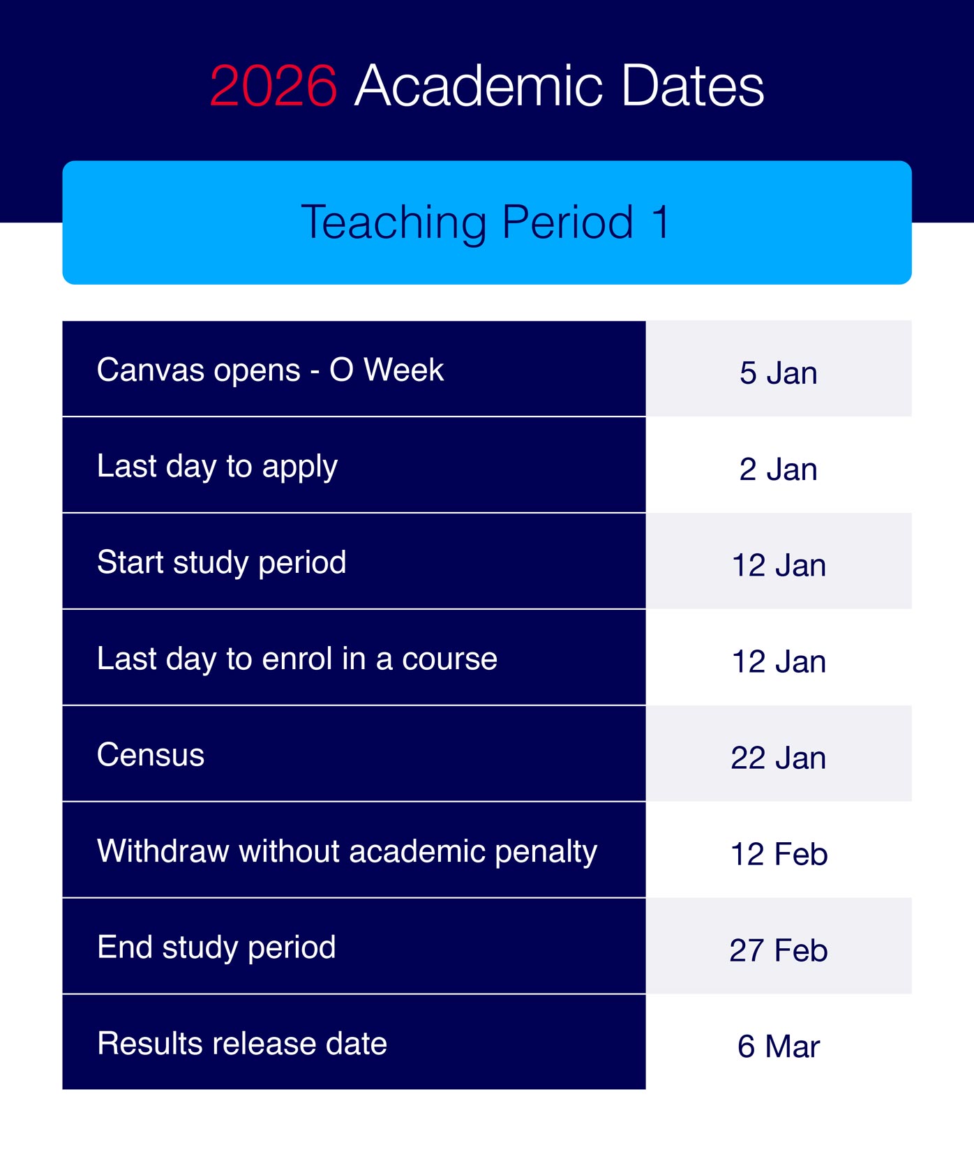 For study planning, goal setting, re-enrolment advice and guidance, contact our Student Success team on 1300 910 929 Monday – Friday from 9am – 5pm.